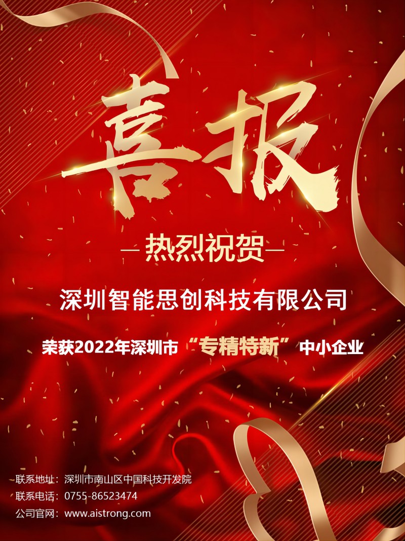 3月15日,深圳市中小企業(yè)服務(wù)局發(fā)布了《關(guān)于2022年深圳市專精特新中小企業(yè)名單的公示》,憑借技術(shù)創(chuàng)新和商業(yè)實(shí)踐方面的杰出表現(xiàn),智能思創(chuàng)成功成為深圳市專精特新企業(yè)的一員,這將是一個(gè)重要的里程碑,證明了我們在技術(shù)研發(fā)、市場開拓、人才培養(yǎng)等方面的實(shí)力和成就。