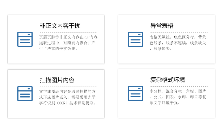 智能思創(chuàng)利用PDF讀取方法、圖形圖像處理方法和光學字符識別(OCR)方法,圍繞上述各個難點,構建創(chuàng)造性的解決方法流程,精準高效的完成文檔內容提取和再組織任務,高準確率的還原PDF原始內容與格式。